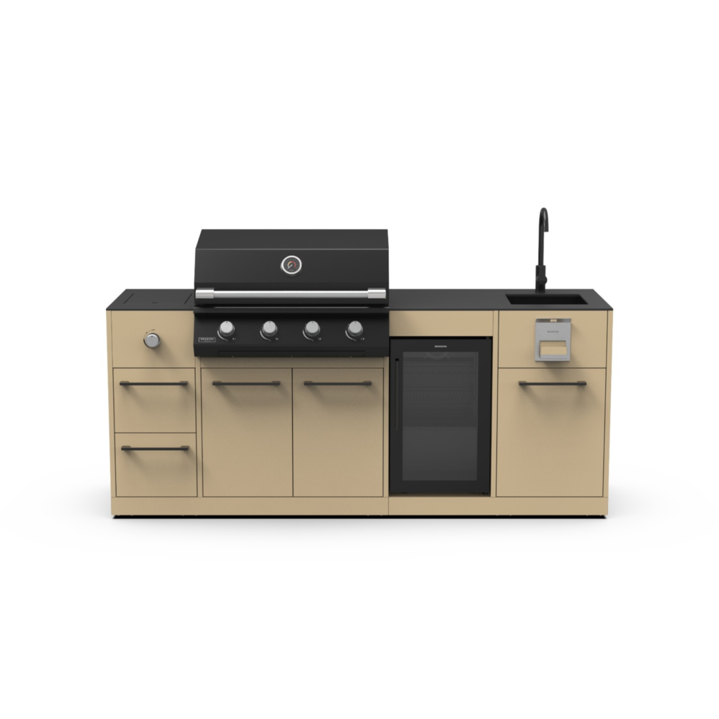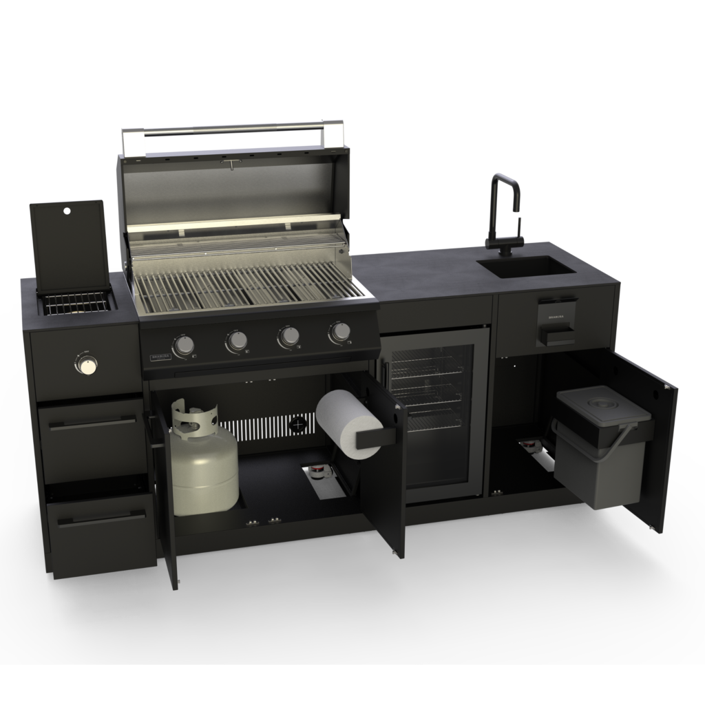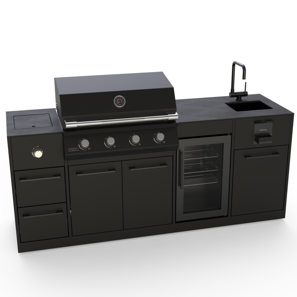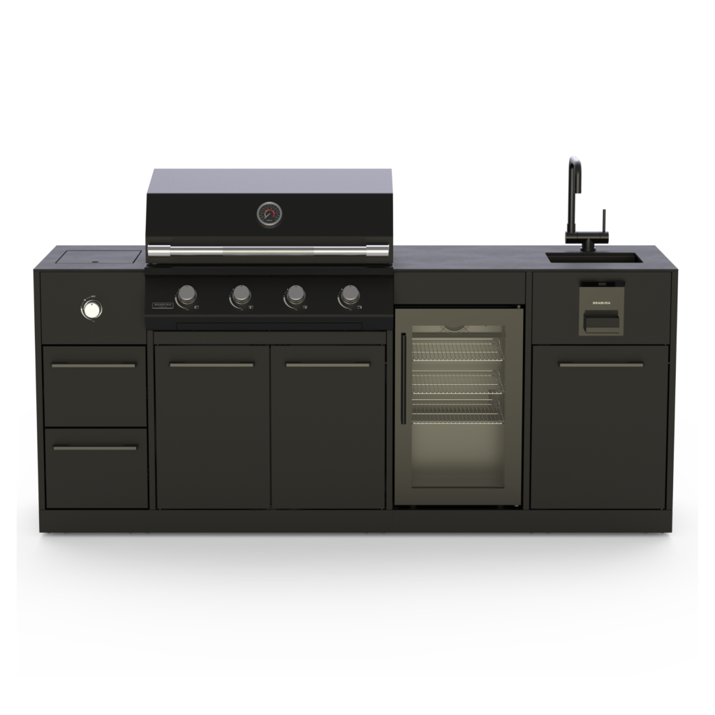 Jeśli marzy Ci się większa kuchnia ogrodowa, zapraszamy do zapoznania się z modułową kuchnią ogrodową BRABURA. Dzięki niej można skomponować swój wymarzony zestaw do gotowania i grillowania na świeżym powietrzu. Kuchnia BRABURA pozwala na stworzenie unikalnej przestrzeni, która nie tylko spełnia funkcjonalne wymagania, ale także harmonizuje z ogólnym wyglądem ogrodu. Dostępne są różne opcje kolorystyczne i wykończeniowe, co umożliwia idealne dopasowanie do reszty wyposażenia ogrodowego.